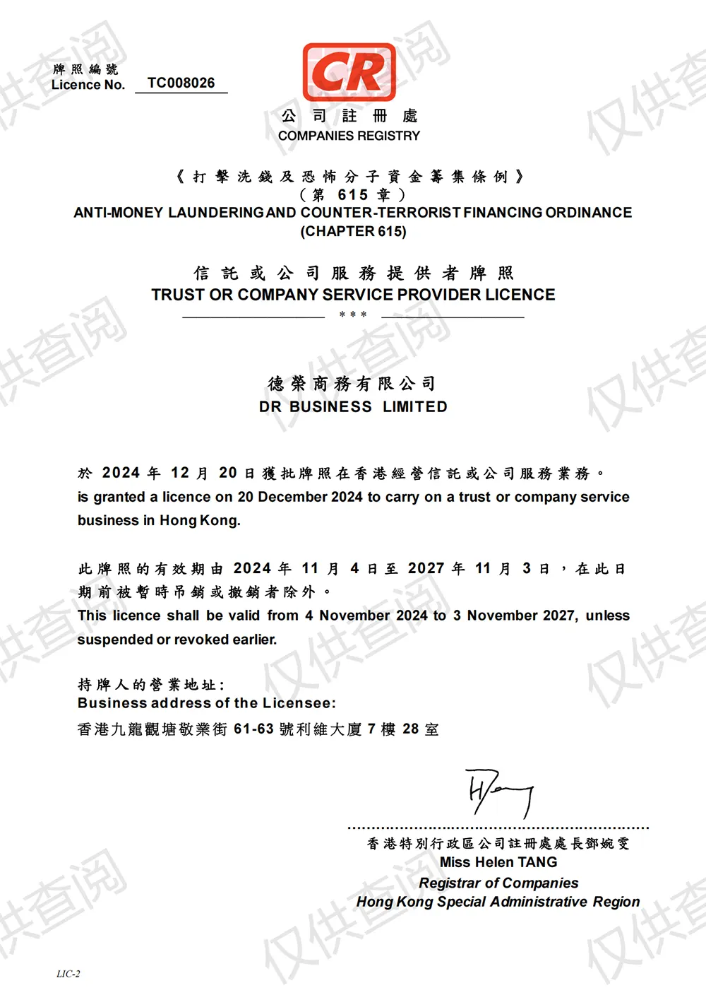 - 委托德荣商务(专业持牌秘书公司)