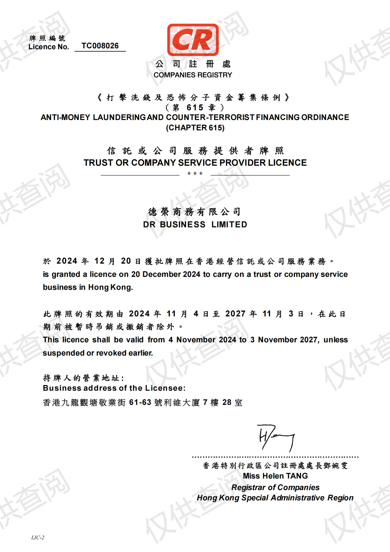 香港公司商业登记证