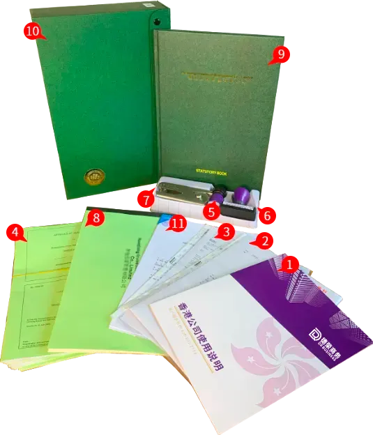 包括公司章程、股东及董事身份证明文件(身份证或护照复印件)、注册地址证明、公司秘书委任书等